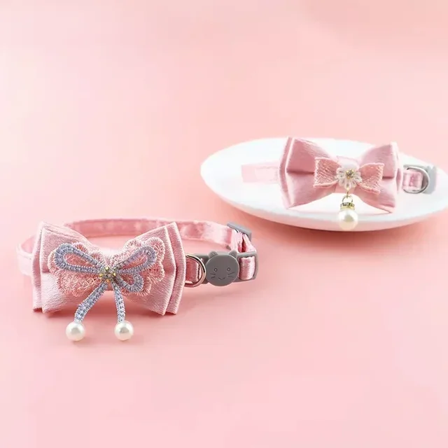 Pet Collar Pink Lace Bow Hanging Bead Cat Choker Bell Dog Cat Supplies Pet Accessories Dog Accessories Dog Cat Products