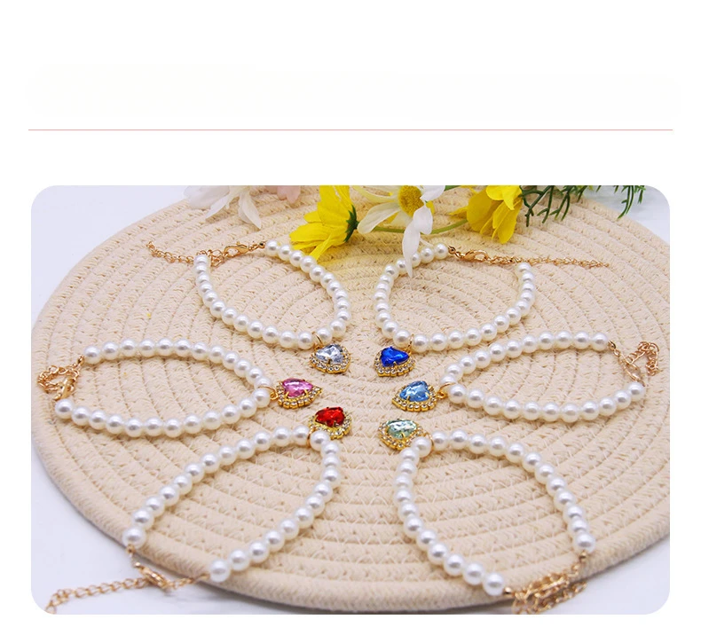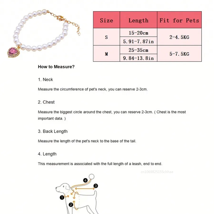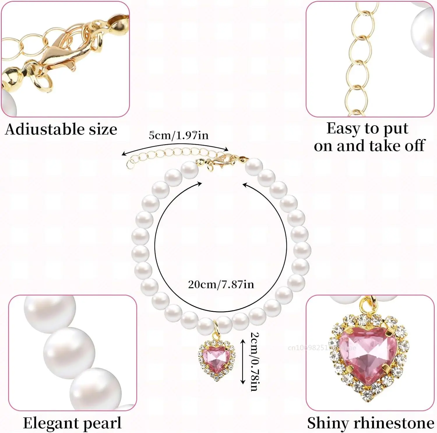 Pet Pearl Adjustable Collar Cat Jewelry Pendant Princess Gem Necklace Dog Sweet Decorations Puppy Rhinestone Collar Accesorios