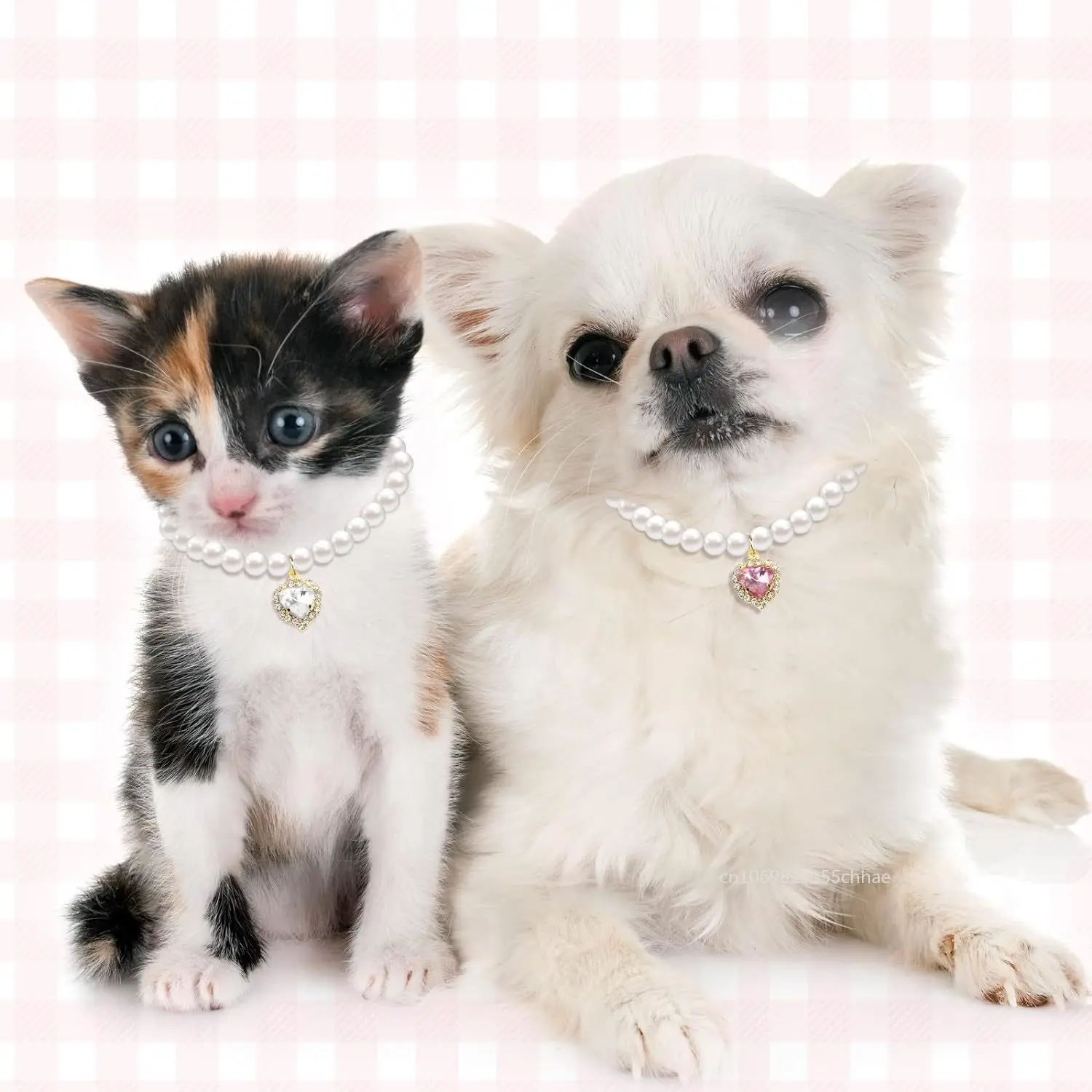 Pet Pearl Collar Dog Princess Necklace Cat Jewelry Cute Collar Puppy Accessories Dog Kitten Chain Chihuahua Wedding Jewelry Gift