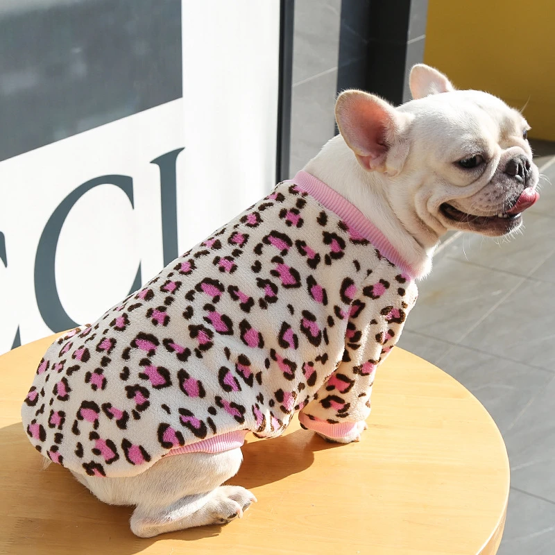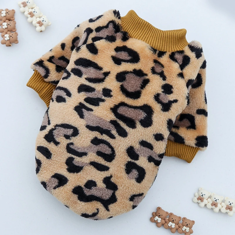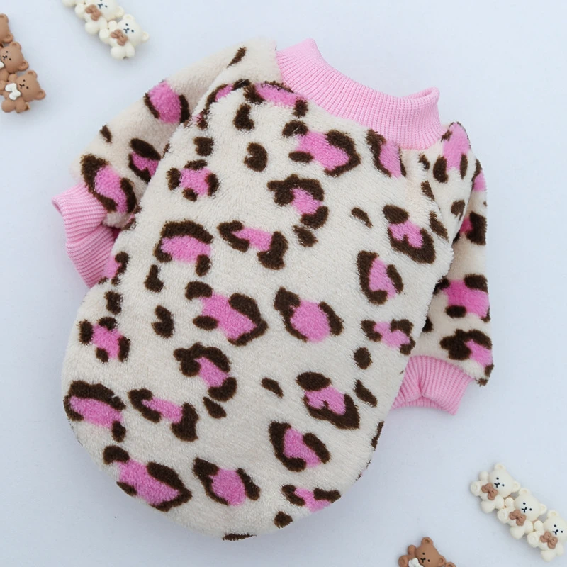 Lovely Leopard Pet Dog Clothes Soft Flannel Winter Puppy Overalls York Dog Cartoon Printing Sphinx Cat Sweatshirt Drop Shipping