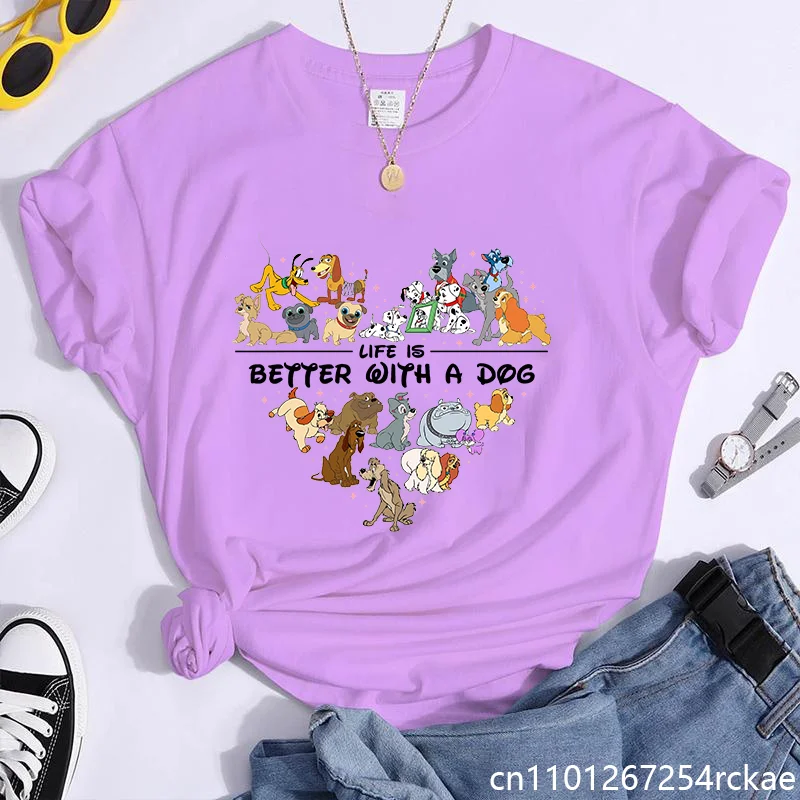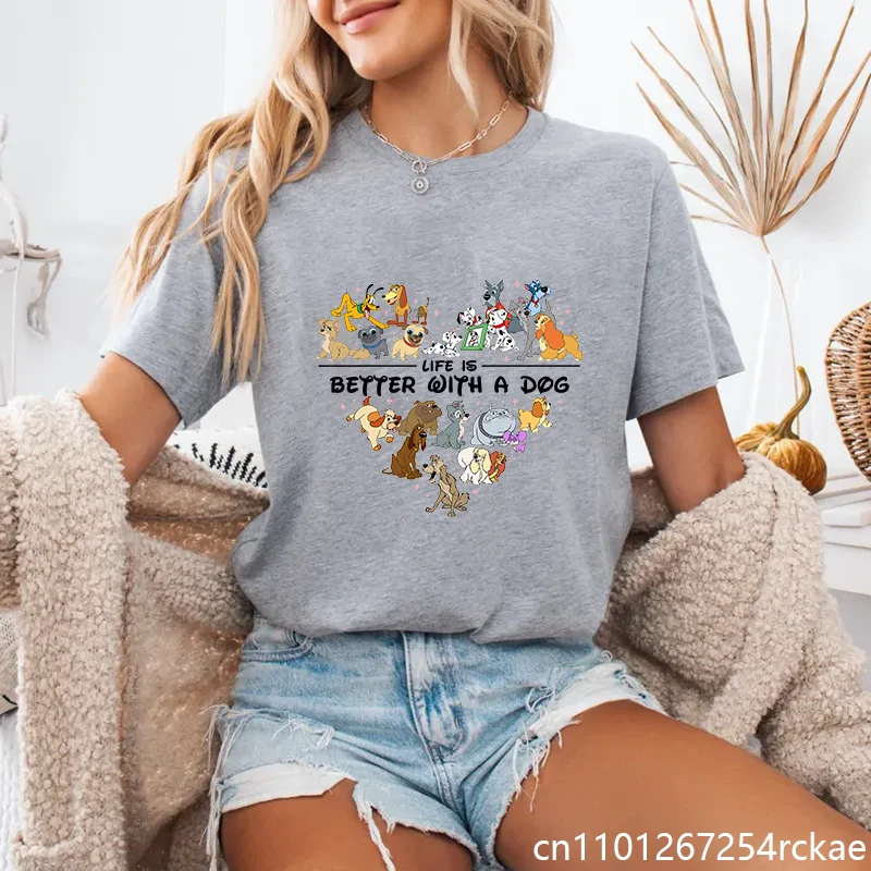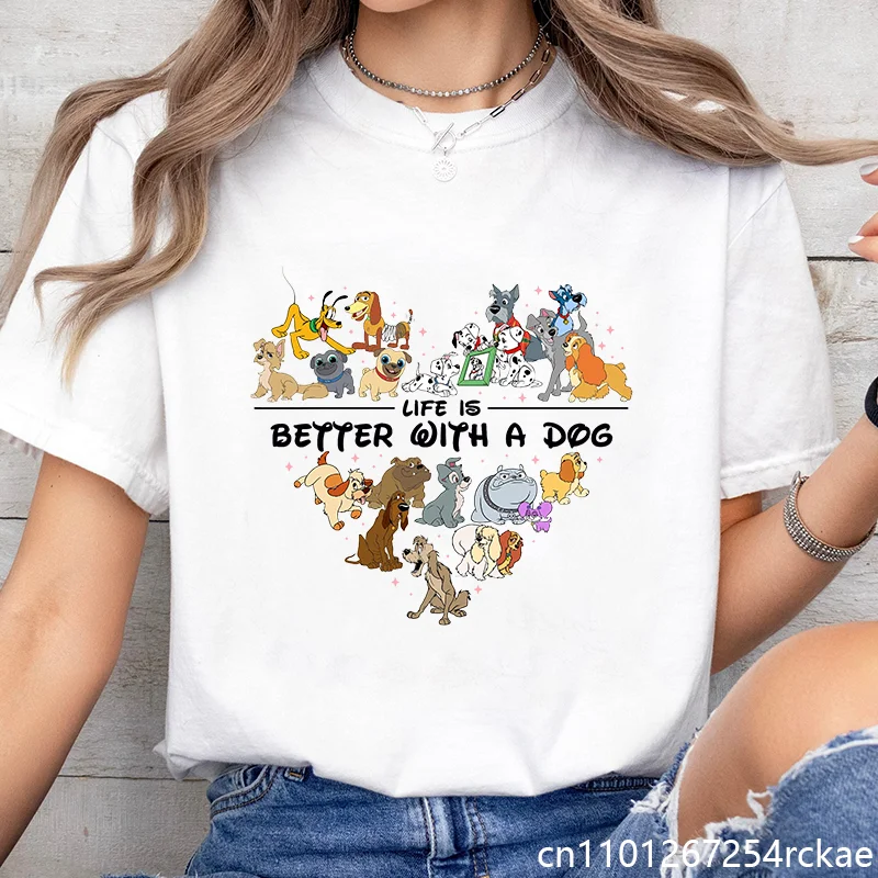 Cute Disney Dogs Printed T-Shirt Women's Dog Lovers Shirt Heart Pattern Dog Harajuku T-Shirt Tops Womens